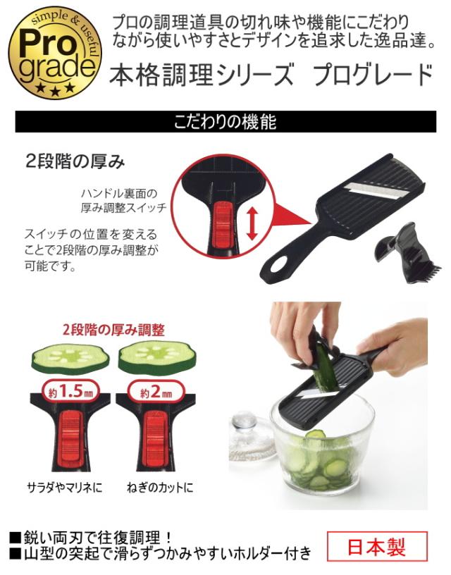 プログレード 厚み調整ミニスライサー PG-630 日本製 野菜 やさい 根菜 切る 千切り 千切り器 スライサー ミニサイズ 厚み調整 ホルダー付 サラダ 調理 料理 キッチン用品 調理器具