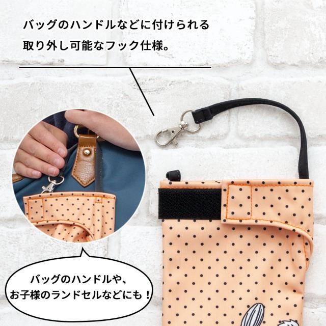 手提げには取り外し可能なフックがついているので、カバンやお子様のランドセルなどに