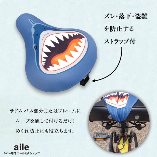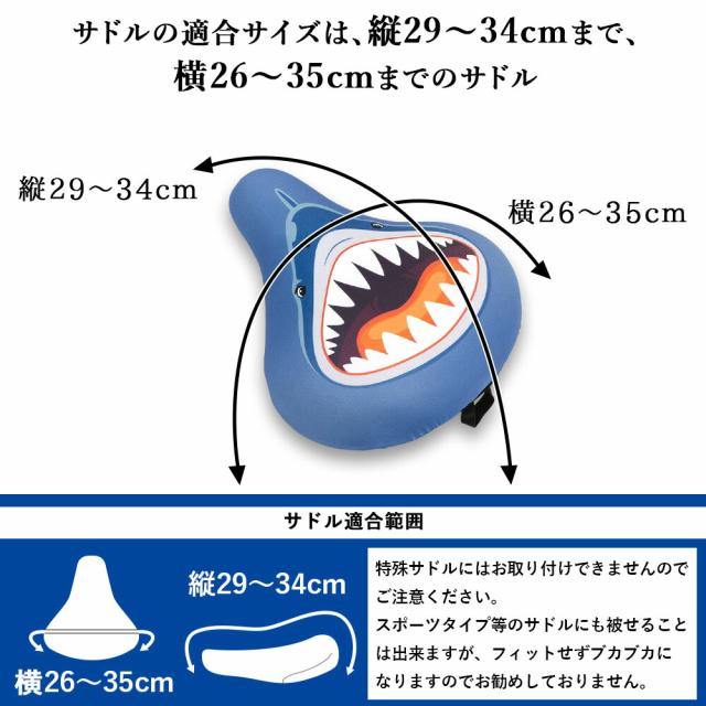 一般サイズのサドルも、大型サイズ/電動アシスト自転車のサドルにも対応したフリーサイズのとっても便利なサドルカバーに、迫力の「サメ」が登場しました!