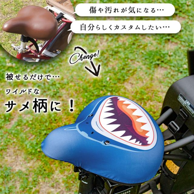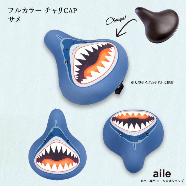 サドルカバー フリーサイズ サメ フルカラーチャリCAP 自転車カバー 着せ替え 撥水 雨 おもしろ ママチャリ 電動アシスト自転車 キズ 汚れ 防止 一般サイズ 大型サイズ フリーサイズ ギフト