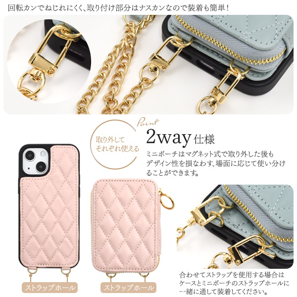 スマホショルダー iPhone13mini ショルダーストラップ付き スマホケース キルティング ショルダーケース おしゃれ 肩掛け iPhoneケース ミニポーチ付属 装着簡単 斜め掛け 韓国風 淡色 スマホカバー ベーシック スマホポーチ 背面保護 カジュアル SoftBank au docomo