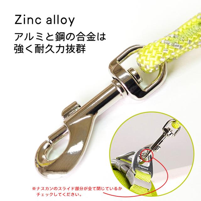 ※鉄砲ナスカンは、レバー部分に何かが接触すると稀に外れることがございます。ワンちゃんを抱っこしたりした後や激しい動きをした後はナスカンが外れていないかの確認をお願いいたします。