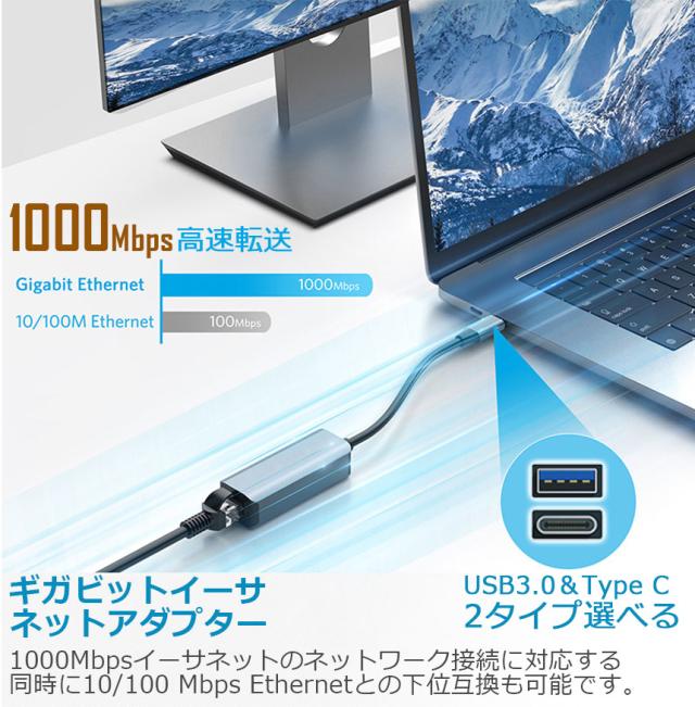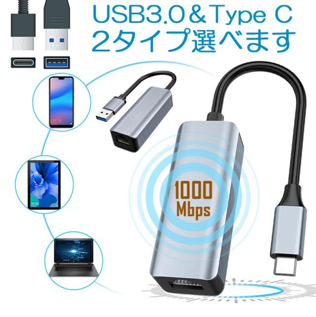 USB3.0 Type C LAN 変換アダプター 有線LANアダプター 1000Mbps イーサネット USB3.0 USB-C 選べる ギガビット 高速転送 RJ45 Giga LAN 変換アダプター アルミ Windows Mac OS Linux対