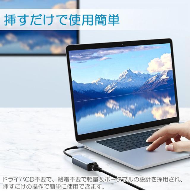 【挿すだけで接続簡単】ドライバー不要、ルーターから接続されているUSBC有線LANケーブルを繋げるだけ
