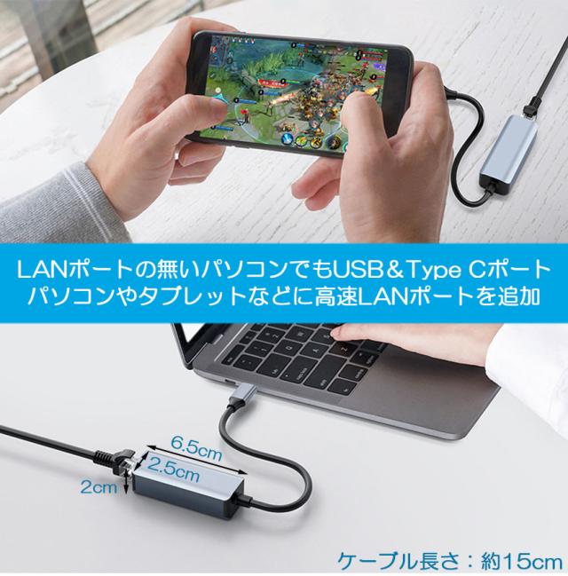 【1000Mbps高速ギガビット】有線LAN変換アダプタUSB3.0&TypeCは最大1000Mbpsまでの高速回線速度になり、安定また超高速のインターネット通信が維持されています。仕事の効率がより良くなり、オンラインゲームも遅延無くなります。【多くのType-C機器に適用】有線LAN変換アダプターの互換性が高くて、MacBookPro2018/2017、MacBook、iPadPro2018、DellXPS13/15、SurfaceBook2、Pixelbook、Chromebook、などtype-c&USB端子を搭載したデバイス向けです。Windows、Mac OS、Chrome OS、Linux OS において高速で安定した接続機能を提供します。(ご注意:Nintendoswitchには対応できません。予めご了承ください。)