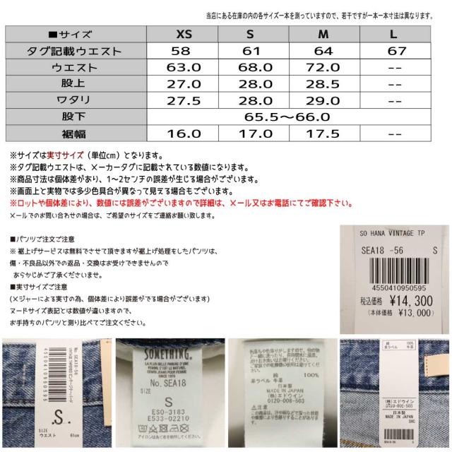SOMETHING サムシング ジーンズ テーパード SEA18 デニム パンツ HANA ヴィンテージ レディース ボトムス 股上深め 綿 100%