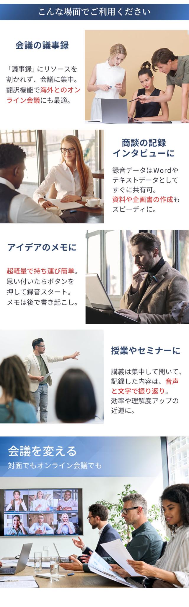 会議の議事録や商談・インタビュー、アイデアの記録やセミナーにも最適です。