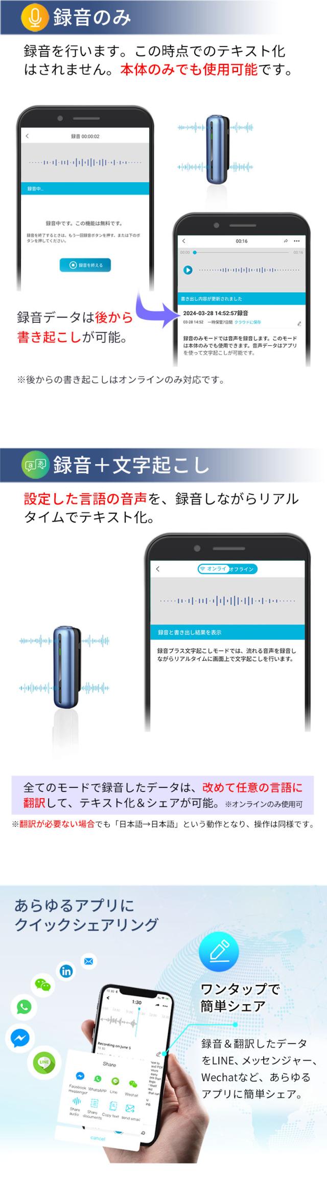※アプリ「録音のみ」モードはオンラインのみとなります。