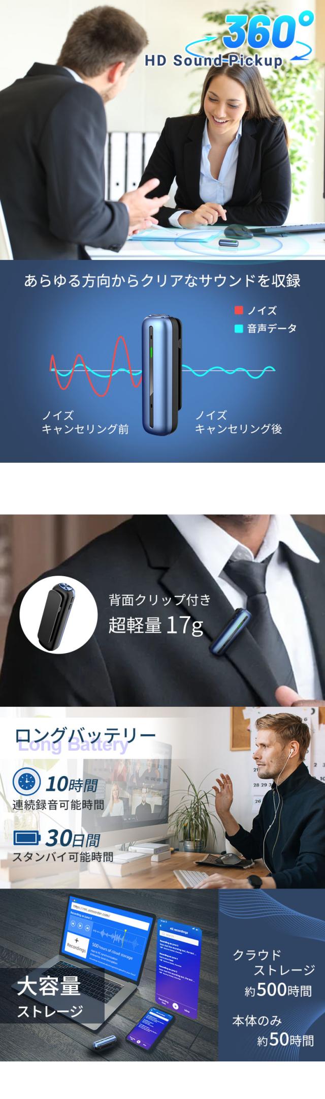 大容量・最大500時間録音可能。