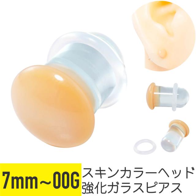 肌色 ヘッド ガラス リテーナー ラージゲージ 00G 9mm 0G 7mm 軟骨ピアス ボディピアス 強化ガラス スキンカラー ラージホール