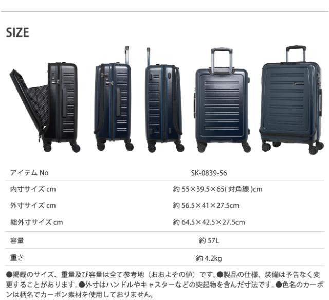 スカイナビゲーター SKYNAVIGATOR スーツケース キャリーケース SK-0839-56 57L Mサイズ フロントオープン ハード 軽量 TSAロック 送料無料