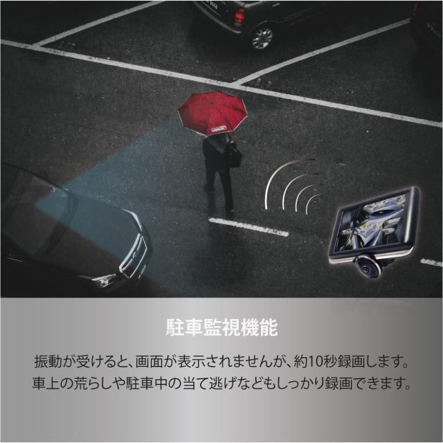 ★駐車監視機能搭載 振動を受けると、自動的録画を開始します。