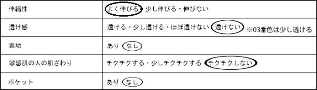| 素材 | 本体:綿100% リブ部分:綿95% ポリウレタン5% |