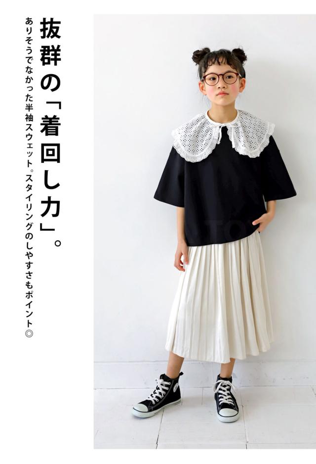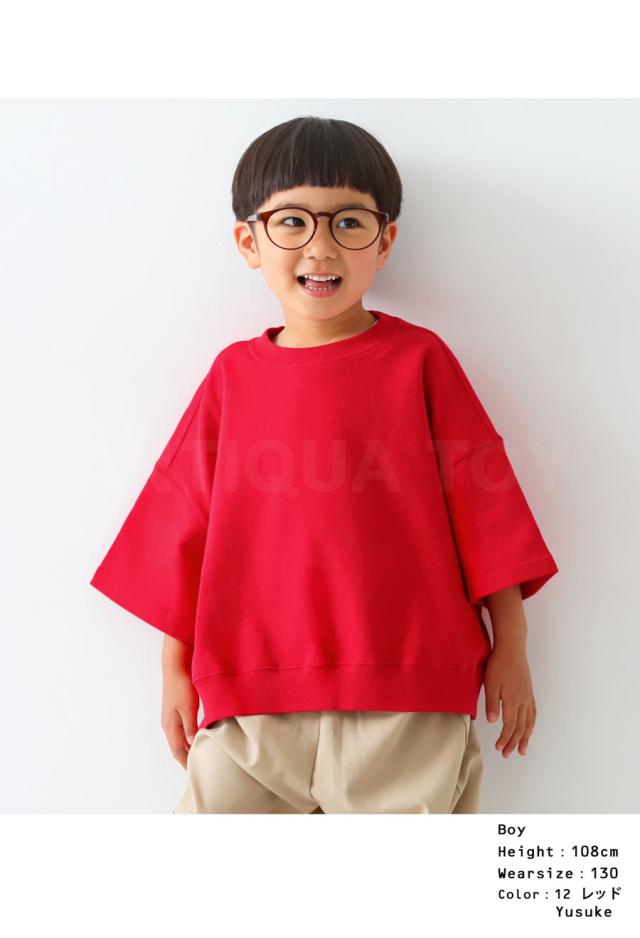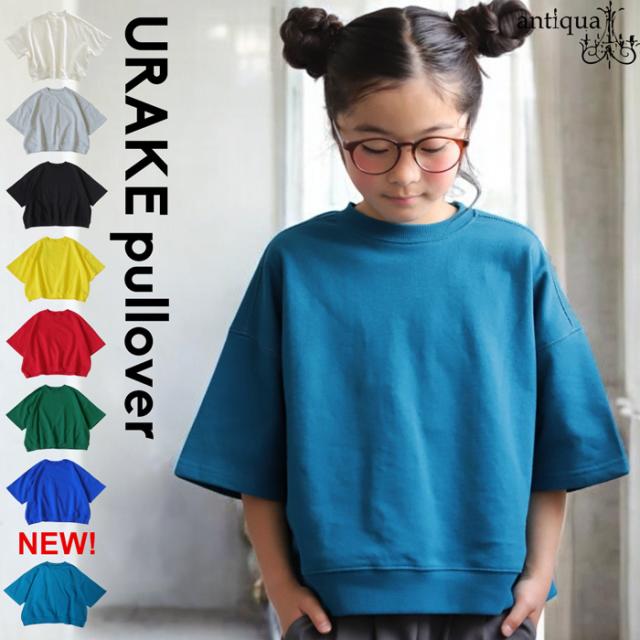 【検索ワード】半袖 裏毛プルオーバー トレーナー キッズ 子供服 ジュニア トップス 綿100 スウェット 無地 ショート丈 シンプル クルーネック 丸首 リブ ゆったり ラフ 裏毛 裏毛トップス 薄手 綿 コットン 着痩せ 細見え プルオーバー 親子 お揃い リンクコーデ 親子コーデ ファミリー おそろ オソロ 低学年 高学年 中学生 中高生 120cm 130cm 140cm 150cm 160cm 双子コーデ プレゼント お祝い 出産祝い 春 夏 キッズ 男の子 女の子 ガール ガールズ 通学 お出かけ お洒落 アンティカ antiqua おしゃれ 可愛い かっこいい