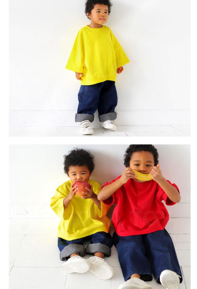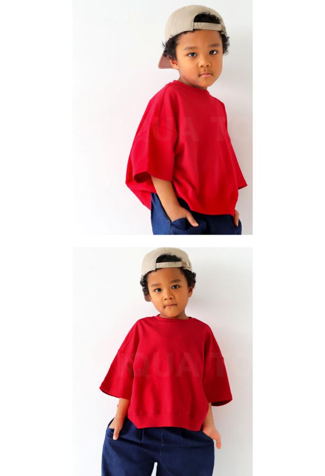 tya-00031 キッズ 子供服 男の子 女の子 ジュニア 低学年 高学年 中学生 中高生 トップス 綿100 スウェット 無地 ショート丈 シンプル クルーネック 丸首 リブ ゆったり ラフ
