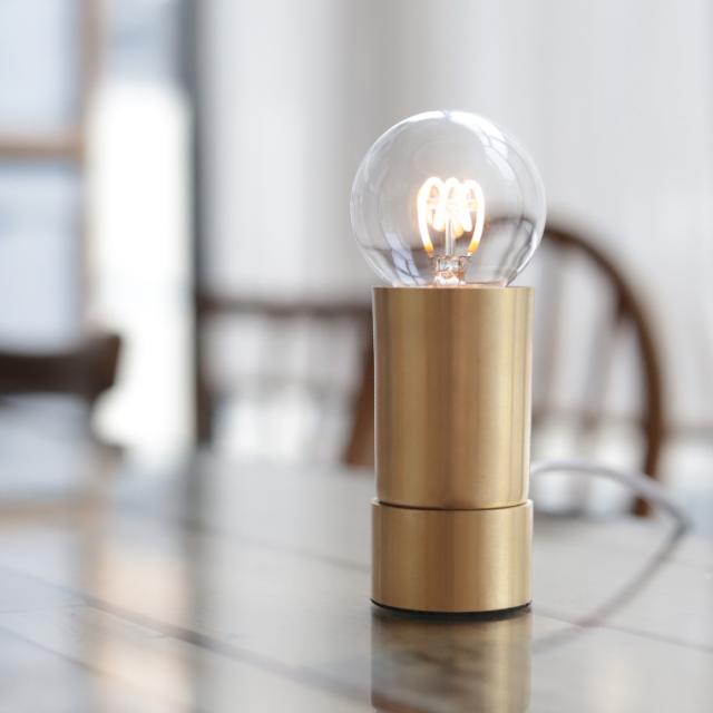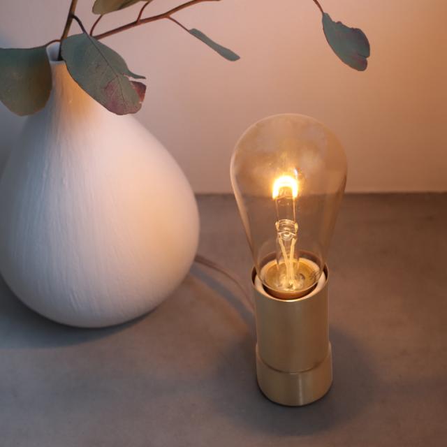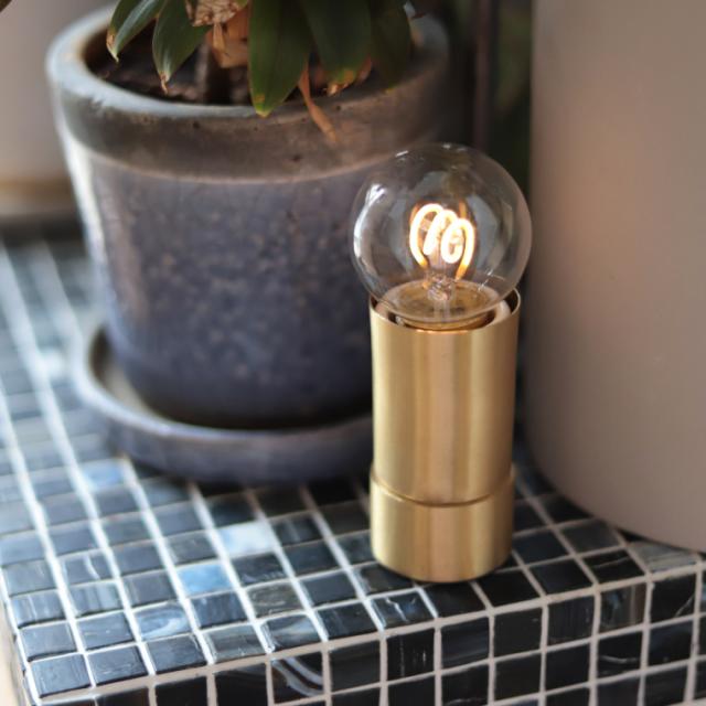 電球のデザインを引き立てるコンパクトな置き型照明。