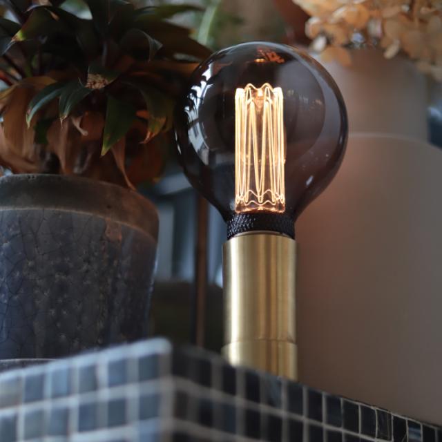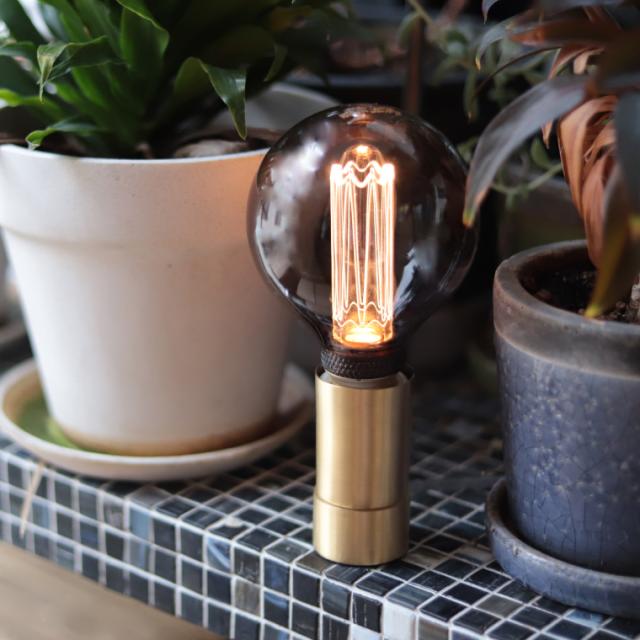 電球のデザインを間近で楽しめる小ぶりでシンプルな一灯用の置き型照明。