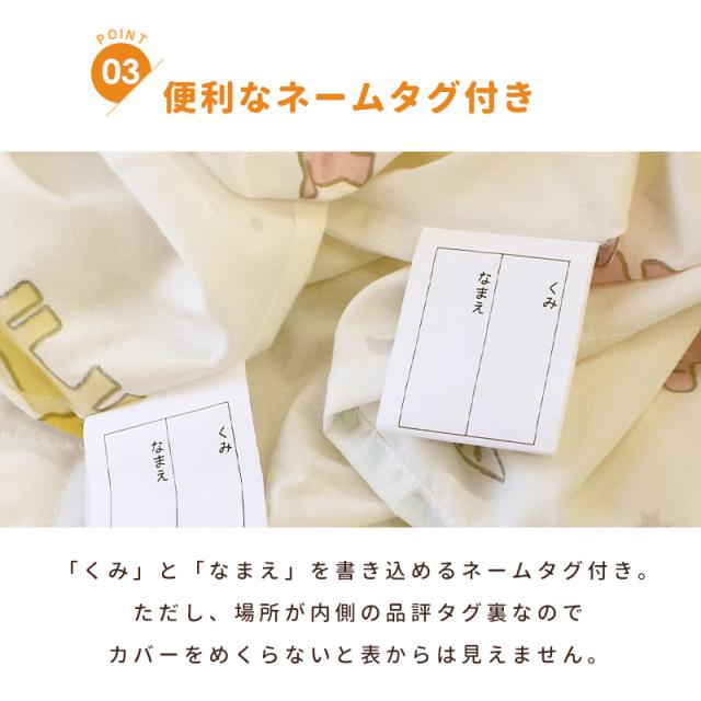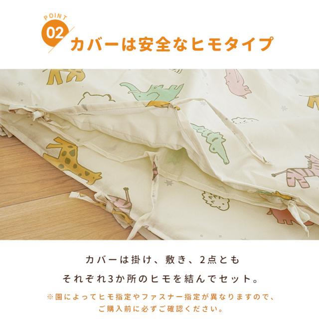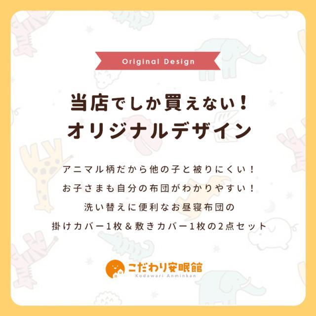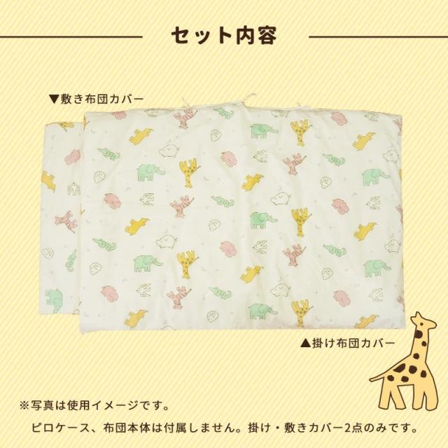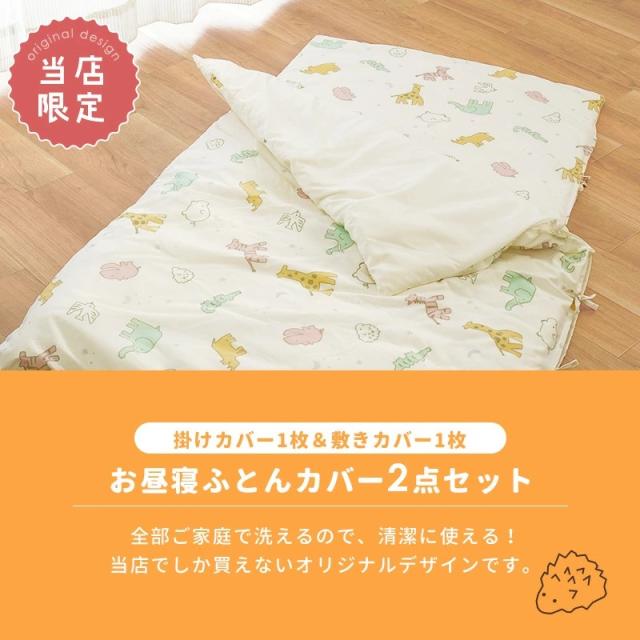 お昼寝カバー 2点セット 保育園 掛け布団カバー 80×110cm 敷き布団カバー 69×122cm 紐 3ヶ所 ネームタグ 動物 お昼寝
