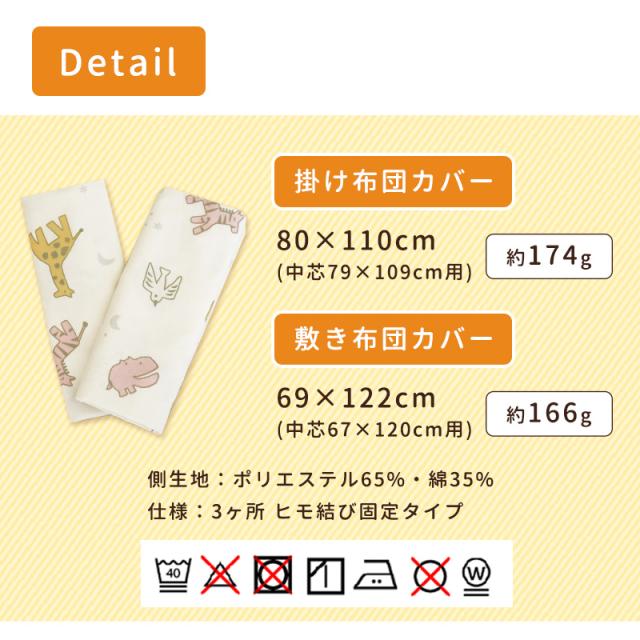 | サイズ | ・掛け布団カバー 80×110cm | |||