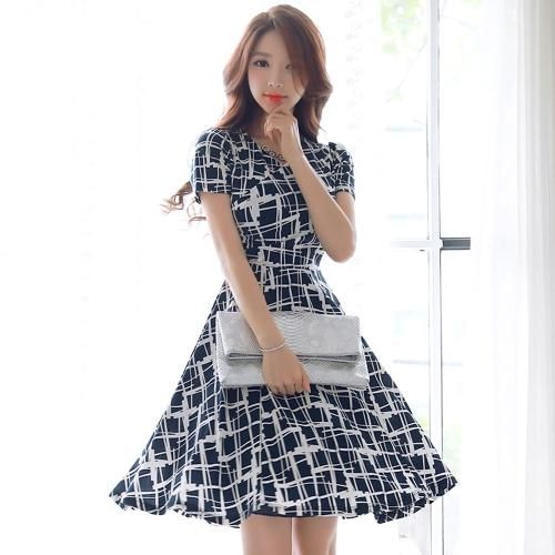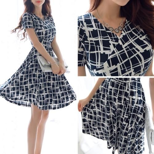 カシュクールのVカットでお顔まわりをスッキリ見せるワンピは、ウエストの切り替えでくびれ効果とふんわり広がるスカートでヒップ周りを隠す優秀アイテム。