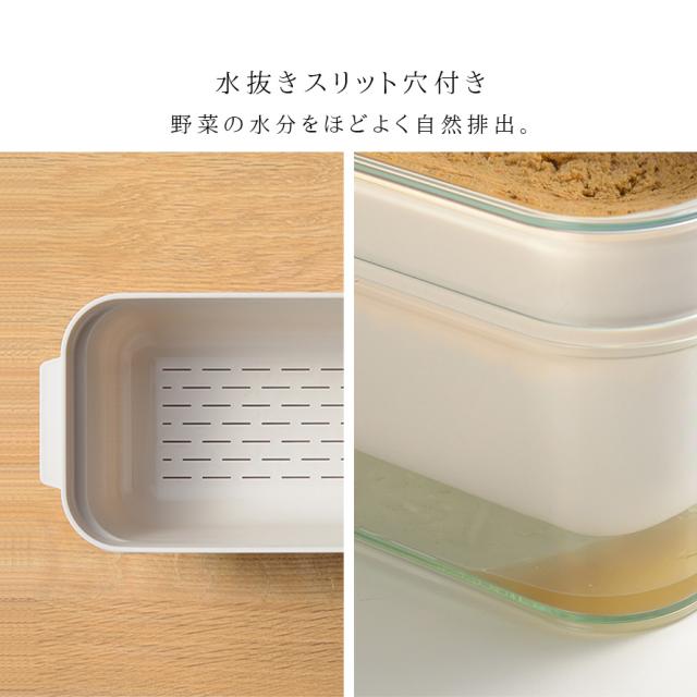 水抜きの手間いらずで、冷蔵庫でもスッキリ収納。TVやSNSでも話題のぬか漬け保存容器です。