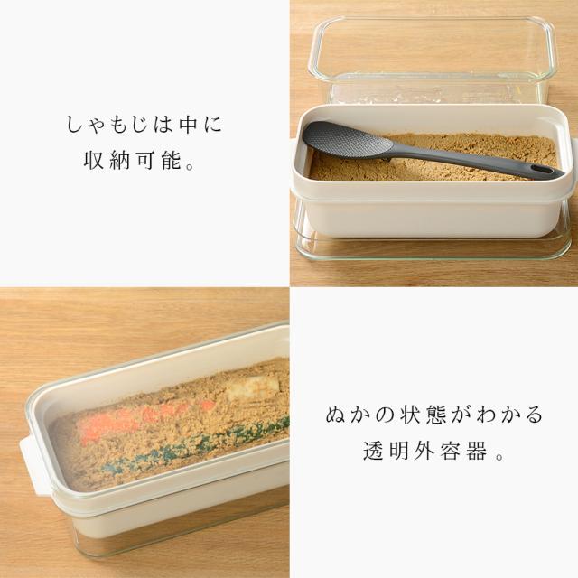 ガラスのようなクリアボディで、ぬかの湿り気や状態をいつでも確認できます。