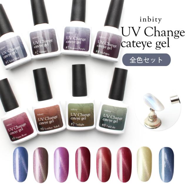 メール便 [全色8本セット]inbity UV Change cateye gel UVチェンジキャットアイジェル | ジェルネイル セルフネイル キャットアイジェル マグネットジェル カラージェル 紫外線 太陽光 UV 全色 セット ネイル ネイル用品