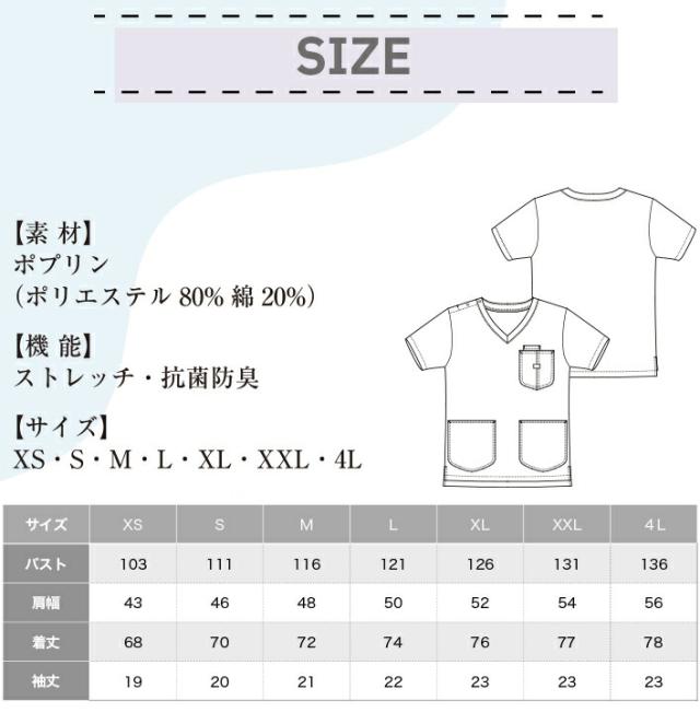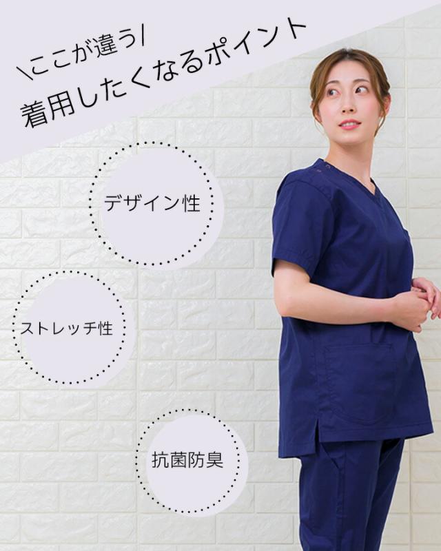 動きやすい様にゆとりを持った仕様のスクラブ。
