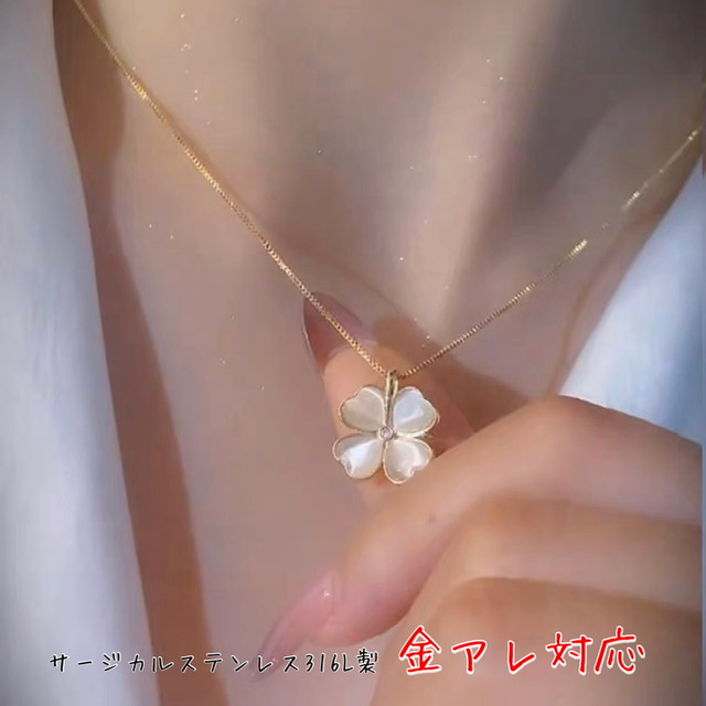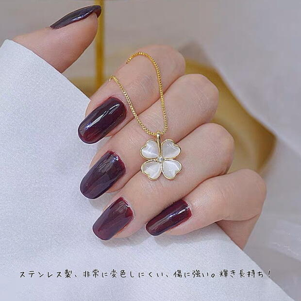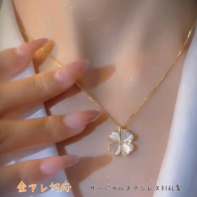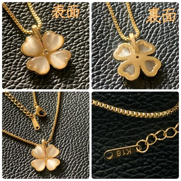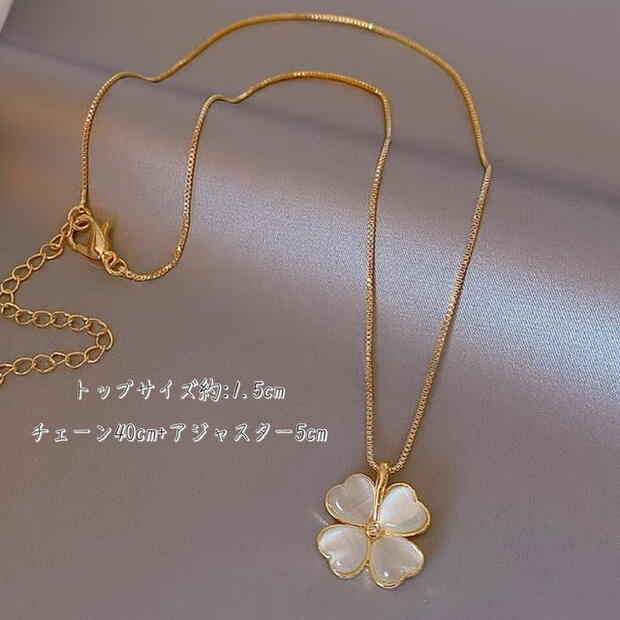 - 可愛です。4ッ葉の後ろ部分が丸みがあってチェーンが短く4ッ葉部分がセーターから見えるのがオシャレで気に入りました。