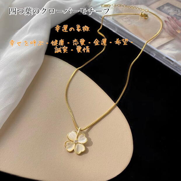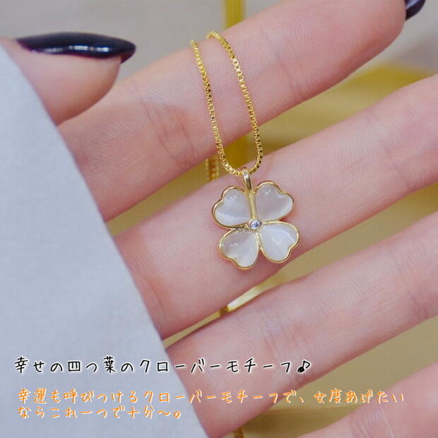 幸せの四つ葉のクローバーネックレス♪幸運も呼びつけるクローバーモチーフで、女度あげたいならこれ一つで十分〜。