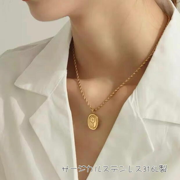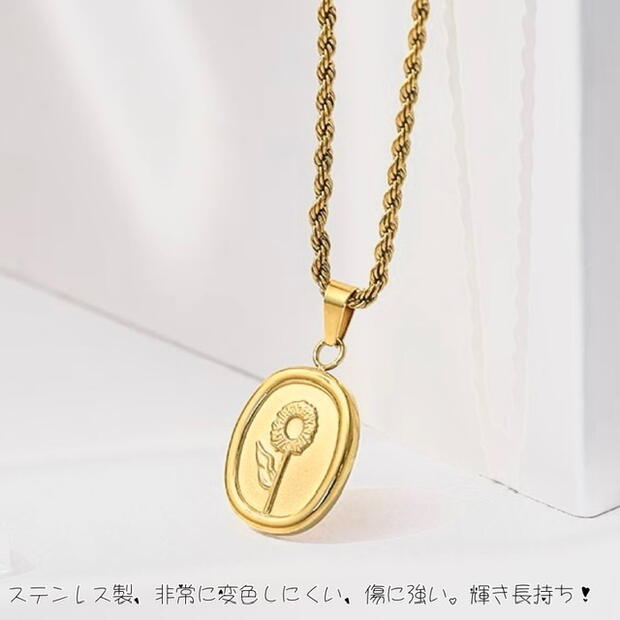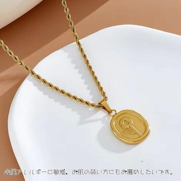 サージカルステンレス ネックレス ペンダント 金属アレルギー対応 向日葵タグ ひまわり プレートネックレス ステンレス チェーン ロープチェーン 2mm幅 金属アレルギー 金アレ対応 k18 コーティング ゴールド カジュアル かわいい おしゃれ クリスマス 誕生日 プレゼント 新作