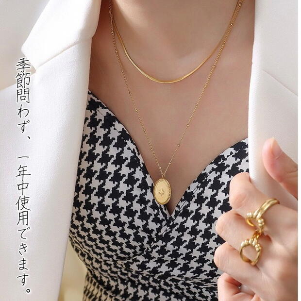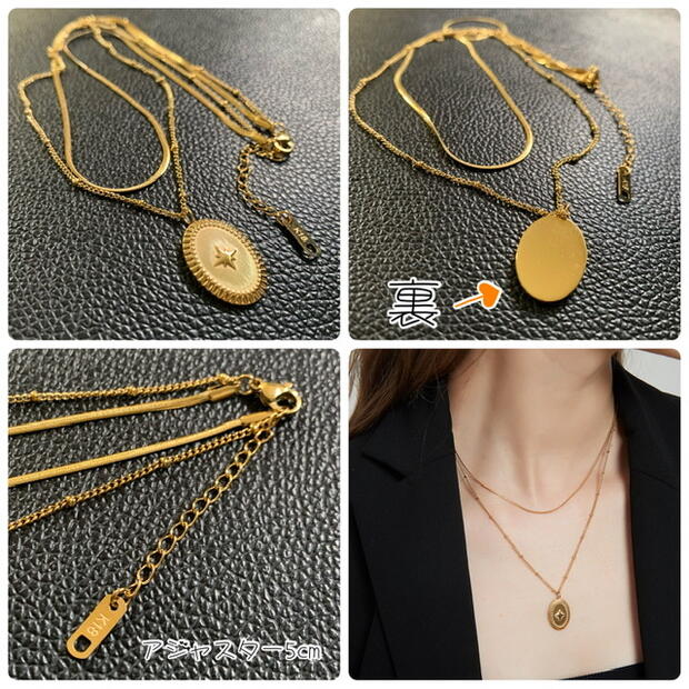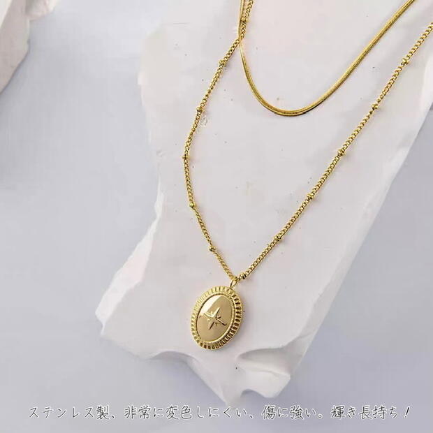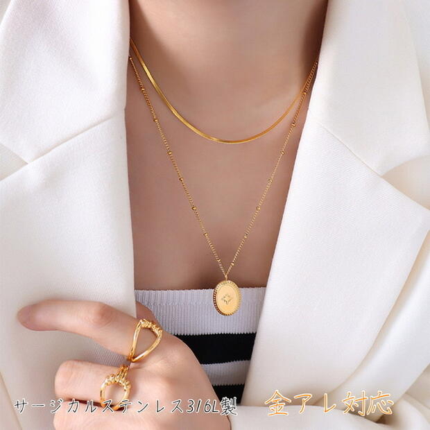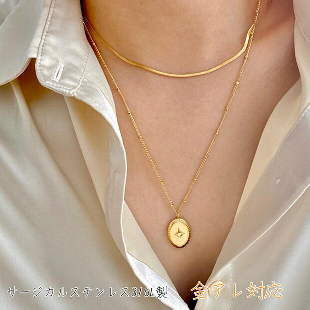 ステンレスネックレス 2連チェーン スネークチョーカー 八角星 オーバルプレートネックレス 金属アレルギー対応 スネークチェーン2mm幅 ステンレス 喜平チェーン ユニセックス k18 ゴールド 18金コーティング カジュアル かわいい おしゃれ クリスマス 誕生日 プレゼント 新作