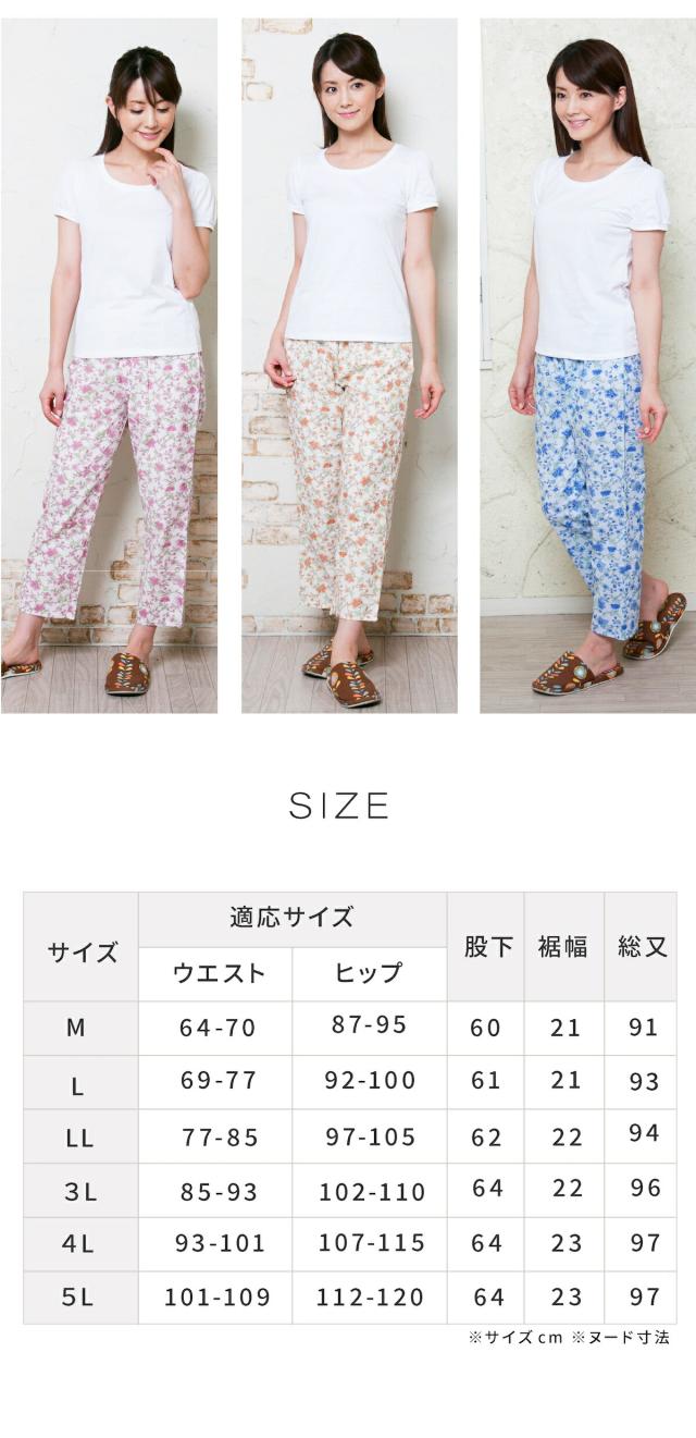 ●Mサイズ ・ウエスト64〜70cm(ヌード寸法) ・股下60cm ・裾幅21cm ・総丈91cm ●Lサイズ ・ウエスト69〜77cm(ヌード寸法) ・股下61cm ・裾幅21cm ・総丈93cm ●LLサイズ ・ウエスト77〜85cm(ヌード寸法) ・股下62cm ・裾幅22cm ・総丈94cm ●3Lサイズ ・ウエスト85〜93cm(ヌード寸法) ・股下64cm ・裾幅22cm ・総丈96cm ●4Lサイズ ・ウエスト93〜101cm(ヌード寸法) ・股下64cm ・裾幅23cm ・総丈97cm ●5Lサイズ ・ウエスト101〜109cm(ヌード寸法) ・股下64cm ・裾幅23cm ・総丈97cm |
