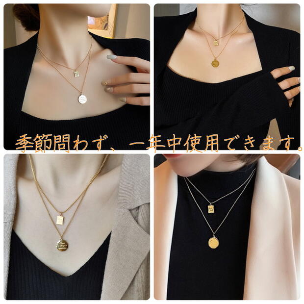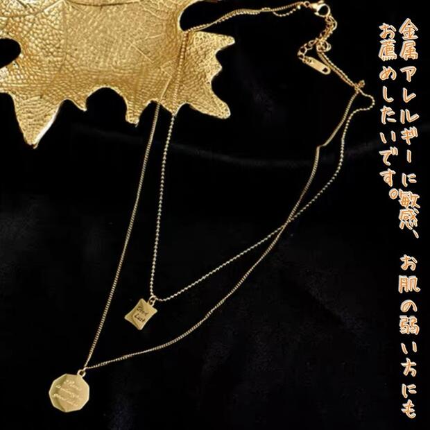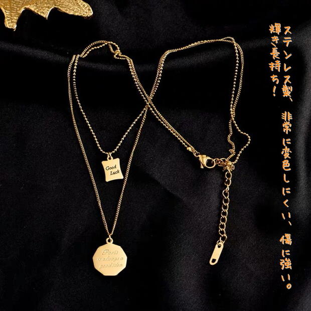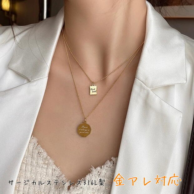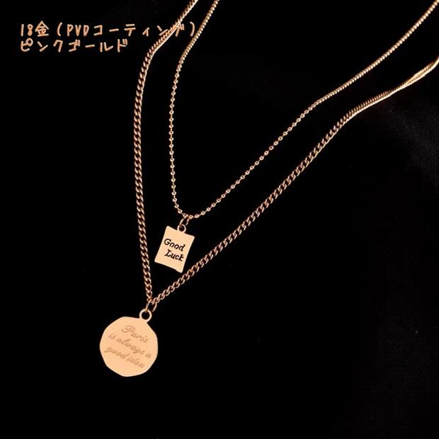 サージカルステンレス316L製 2連チェーン コイン メダル ネックレス