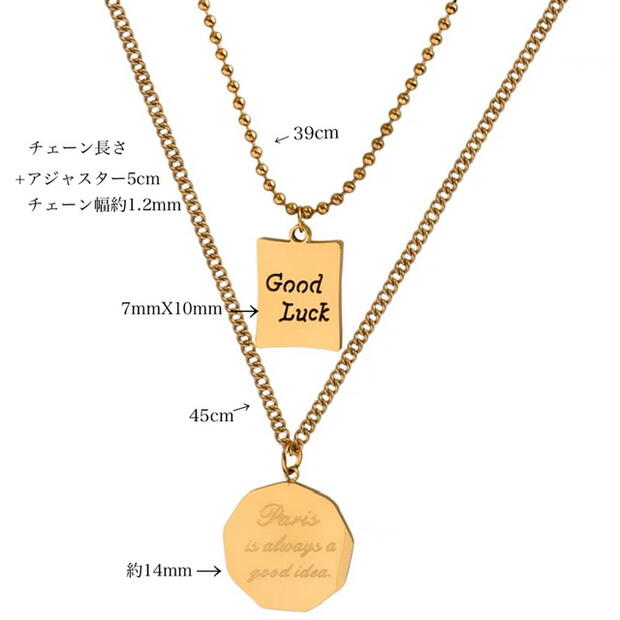 サージカルステンレス ネックレス 金属アレルギー対応 2連チェーン コイン メダル ネックレス ビーズチェーン 喜平チェーン 1.2mm幅 K18コーティング ピンクゴールド ゴールド ラウンドタグ 2連ネックレス 二連 カジュアル 華奢 上品 誕生日 クリスマス プレゼント 新作