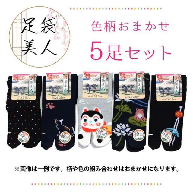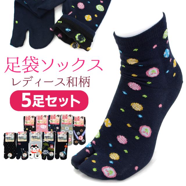 足袋ソックス レディース 口ゴムゆったり 足袋靴下 5足セット 23-25cm 婦人 女性 2本指 靴下 【メール便送料無料】 クルー丈 ソックス 大人 おしゃれ シンプル 和柄 和風 春夏 秋冬 通年用 爽やか 綿混素材 口ゴム 締め付け解消 agesugi_sfa