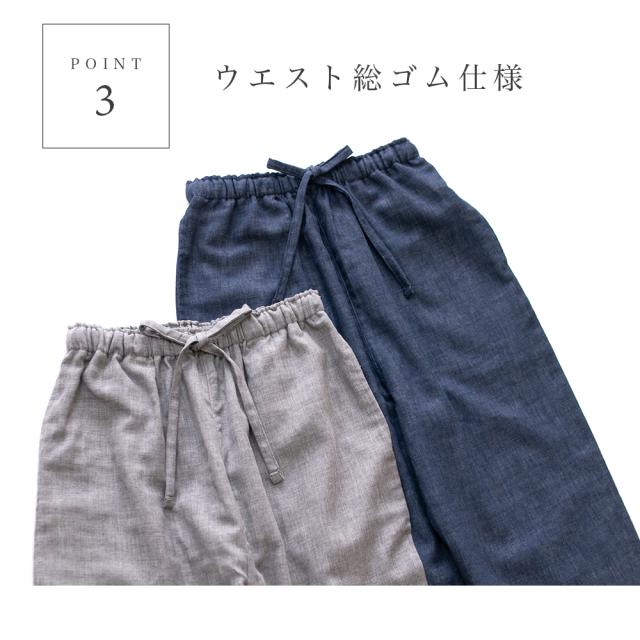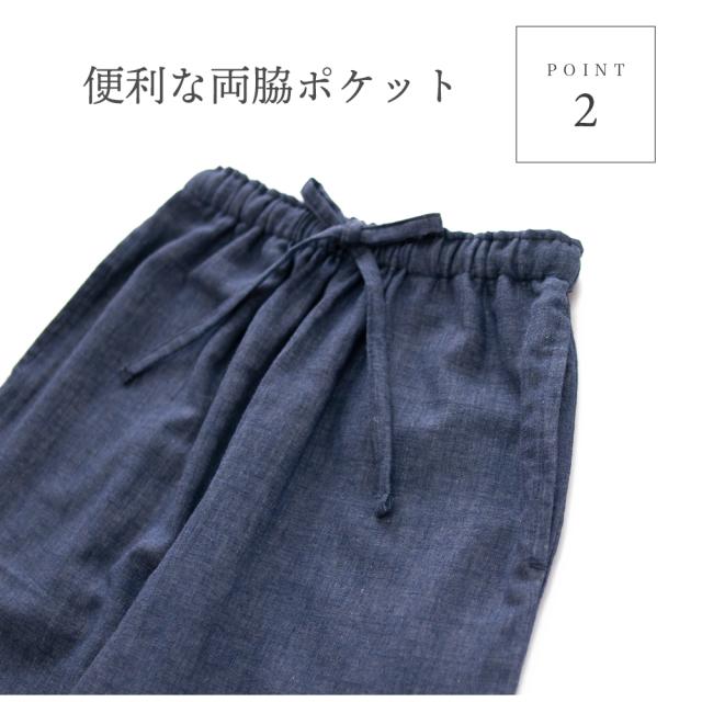 大活躍の予感がするダブルガーゼのルームパンツです。