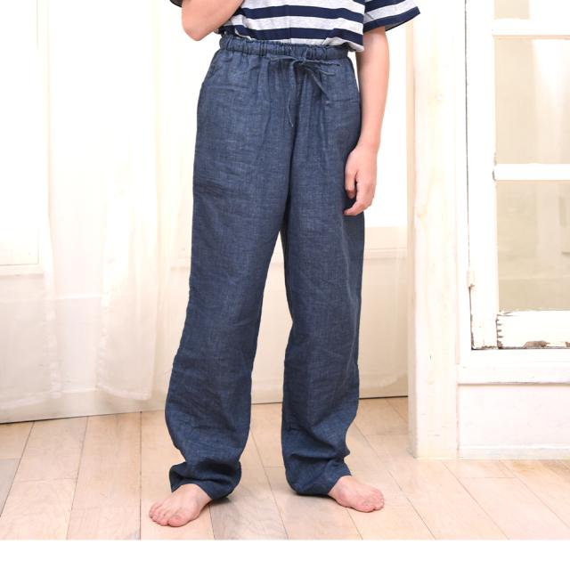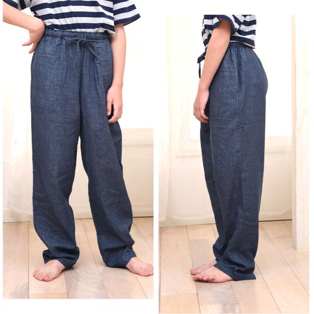 ウエストや裾幅を少しゆったりめに作り、両脇にはポケットがあり便利です。
