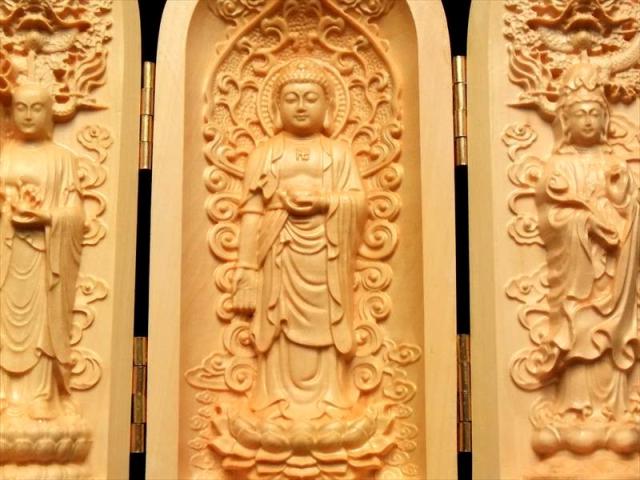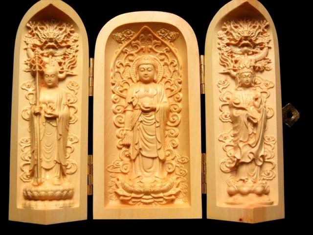 極上手彫り 5A 木彫り 立像 りゅうぞう 釈迦如来像 置物 高さ約100-105mm 仏像 観音開き 風水やインテリアに ok-s