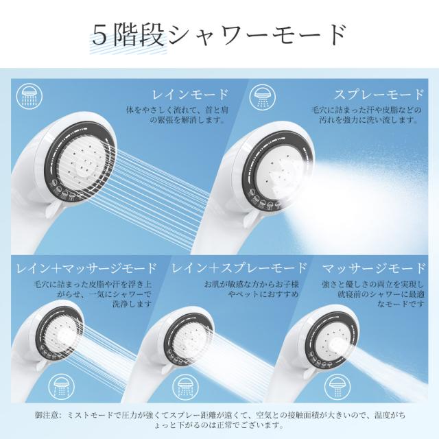 最新型 シャワーヘッド 節水 シャワー マイクロバブル 母の日5段階シャワーモード ウルトラファインバブル 全身 洗浄 美容 頭皮ケア 洗顔 清潔 毛穴汚れ 保湿 プレゼント マッサージ アダプタ4種付き 国際基準G1/2 家庭用 送料無料