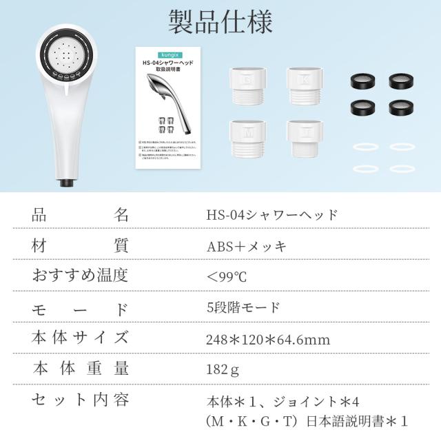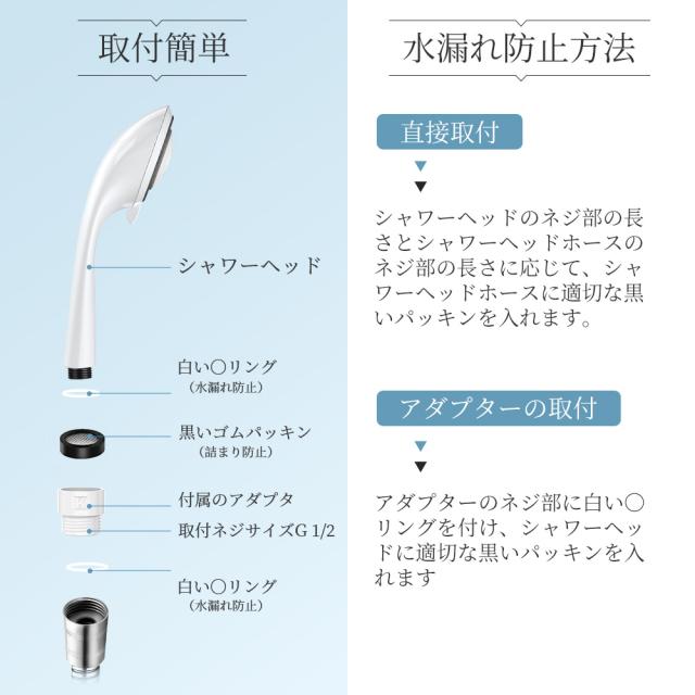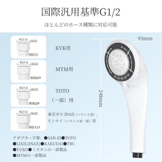 [取付簡単&国際汎用基準] 国際汎用基準G1/2インターフェースで、工具不要でわずか3秒でシャワーヘッド本体にシャワーホースを簡単に取り付けることが可能です。M/K/G/Oの4種類のジョイント付き、自宅のシャワーヘッド規格によって簡単に取付けられます。そのまま取り付る可能ネジ規格:タカギ、東京ガス、TOTO(一部)用、SAN-EI、LIXIL(INAX)、 KAKUDAI。(ご注意:最新型のシャワーヘッドなので、一部分のTOTO製(旧製品)を対応できない可能性があります。)