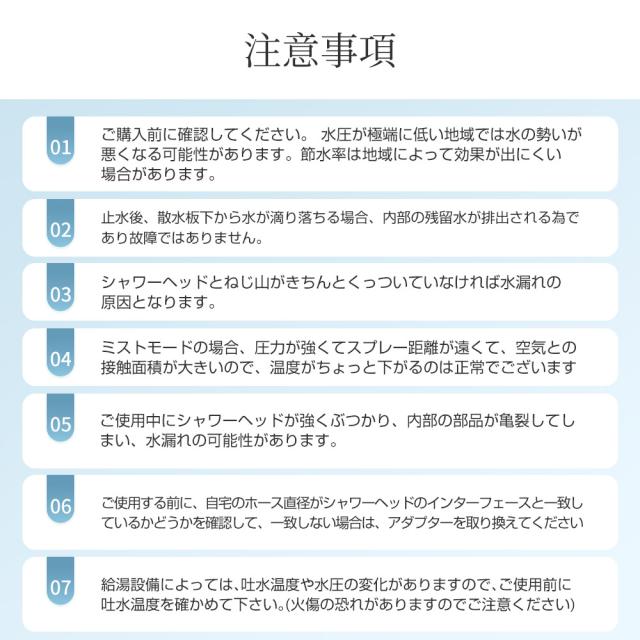 - ミストは他のレビューでも書かれてますが、温度が低くなる感じがします。またミスト水圧が強いとチクチクするので水圧を下げる→節水効果が更に上がる気がします。