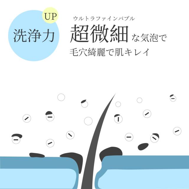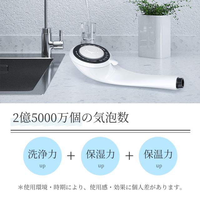 [洗浄力抜群]シャワー水流でも、ミスト水流でもファインバブルが発生し、毛穴、頭皮の汚れなどをスッキリと洗いあげます。洗浄効果が高い理由は、ファインバブル(マイナスイオンを帯電)が肌にあたると、汚れ(プラスイオンを帯電)をイオン効果により吸着します。