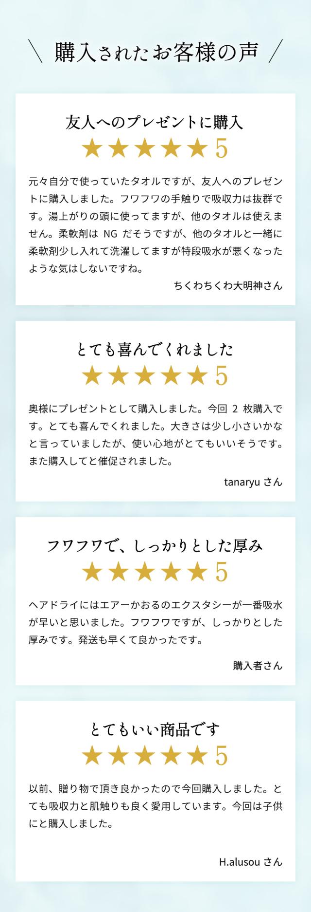 一度使うと忘れられない驚きの吸収力です。お風呂あがり、長い髪の方にもおすすめ。