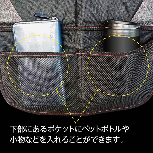 下部にあるポケットにペットボトルや小物などを入れることができます。