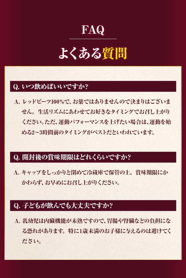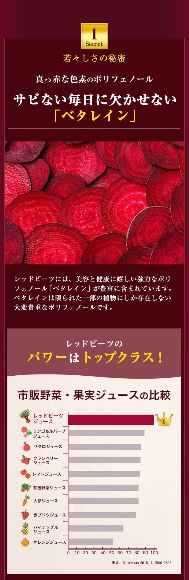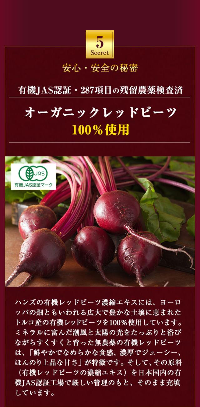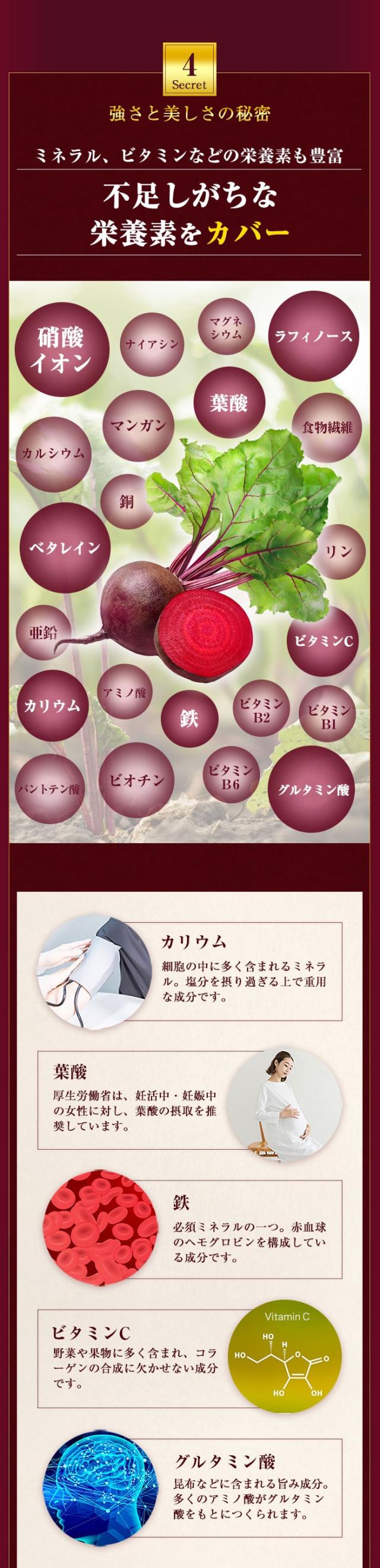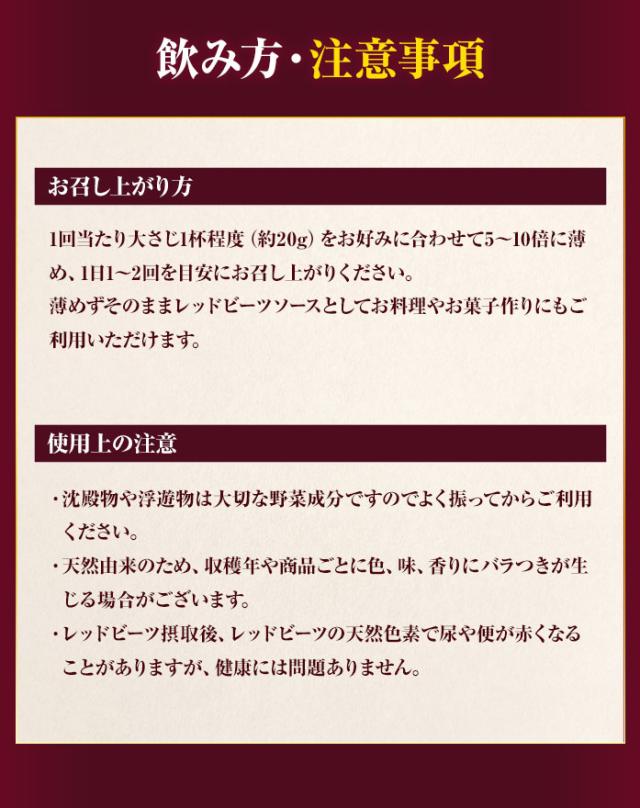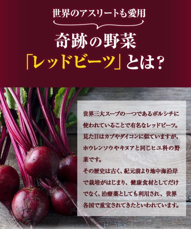 ※レッドビーツ摂取後、レッドビーツの天然色素で尿や便が赤くなる事がございますが、健康には問題ございません。