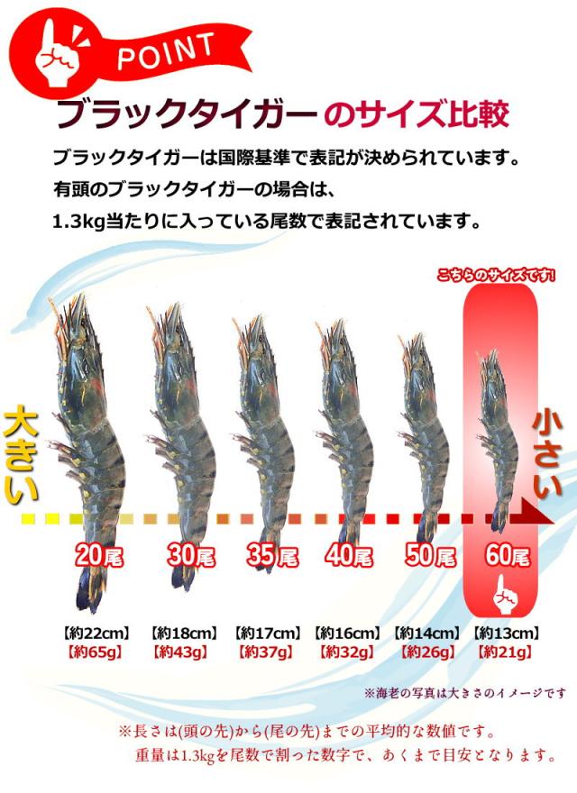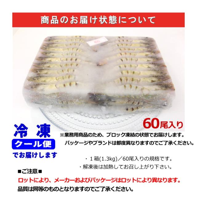 有頭海老 ブラックタイガー 60尾入 有頭ブラックタイガー 業務用 1.3kg 原版・有頭BT60尾・