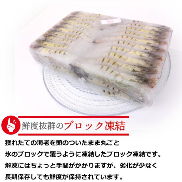 海老の品質を保つために氷で表面を保護したブロック状態で凍結しております。