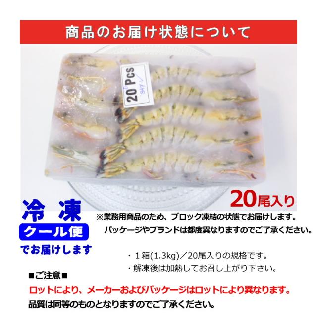 有頭海老 ブラックタイガー 20尾入 有頭ブラックタイガー 業務用 1.3kg 原版・有頭BT20尾・