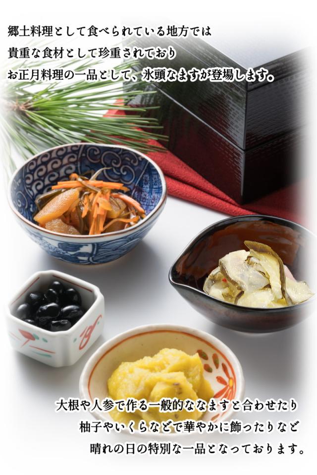 氷頭を、薄くスライスしまして甘酢に漬け込んだ品物です。